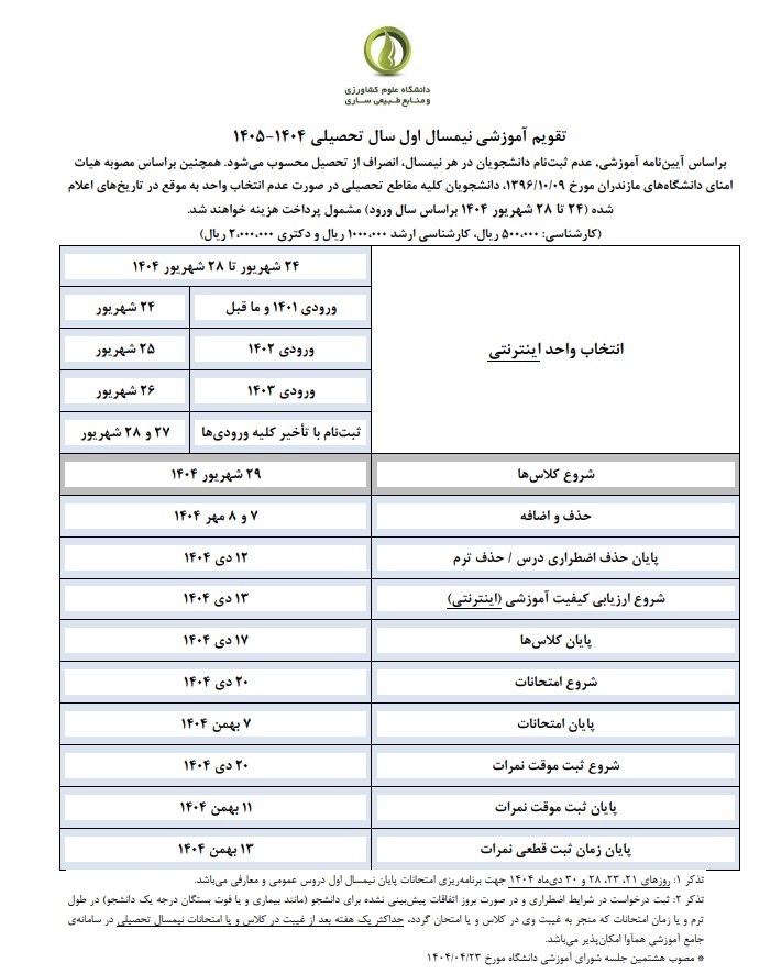 دستور العمل نگارش پروپوزال ( پیشنهاده) مراحل درخواست حذف پزشکی و حذف تکدرس فرمهای پایان نامه/ رساله دانشجویی فرم ارزشیابی کارآموزی /کارورزی اخبار و رویدادها آبان ۲۴, ۱۴۰۴ سرپرست گروه آموزشی گیاهپزشکی منصوب شد به گزارش روابط عمومی دانشکده ، دکتر خوش روش سرپرست دانشگاه طی حکمی ... بیشتر بخوانید → آبان ۲۴, ۱۴۰۴ حکم مدیر گروه آموزشی علوم و مهندسی خاک تمدید شد به گزارش روابط عمومی دانشکده، دکتر خوش روش سرپرست دانشگاه طی حکمی دوره ... بیشتر بخوانید → مهر ۲۳, ۱۴۰۴ کسب رتبه دهم کشوری در سیامین دوره المپیاد ملی زراعت و اصلاح نباتات (مرداد ۱۴۰۴) به گزارش روابط عمومی دانشکده علوم زراعی خانم صدیقه محقق، دانشجوی مقطع کارشناسی ... بیشتر بخوانید → مرداد ۲۸, ۱۴۰۴ اطلاعیه برگزاری آزمون های جبرانی و به تعویق افتاده نیمسال دوم ۱۴۰۳-۱۴۰۴ زمانبندی برگزاری امتحانات به تعویق افتاده پایان نیمسال دوم سال تحصیلی ۱۴۰۳-۱۴۰۴ و ... بیشتر بخوانید → خرداد ۱۱, ۱۴۰۴ کلاس آموزشی و ترویجی بهزراعی برنج در راستای طرح جهش تولید در شالیزار برگزار شد به گزارش روابط عمومی دانشکده علوم زراعی کلاس و ترویجی بهزراعی برنج در ... بیشتر بخوانید → اردیبهشت ۲۱, ۱۴۰۴ بازدید دانشجویان گروه ترویج و آموزش کشاورزی از مراکز مهارتی و گردشگری ساری برگزار شد. به گزارش روابط عمومی دانشکده علوم زراعی، در ارتقاء مهارتهای میدانی و آشنایی ... بیشتر بخوانید → فروردین ۲۴, ۱۴۰۴ مدیر گروه آموزشی اصلاح نباتات منصوب شد. دکتر غلامعلی رنجبر طی حکمی از طرف دکتر مرادی رئیس محترم دانشگاه علوم ... بیشتر بخوانید → اسفند ۲۵, ۱۴۰۳ مجله اصلاح گیاهان زراعی در بانک اطلاعاتی Scopus پذیرفته شد به گزارش روابط عمومی و به نقل از رئیس دانشکده علوم زراعی، مجله ... بیشتر بخوانید → دی ۴, ۱۴۰۳ نشست مشترک بین شرکت توسعه کشت دانه های روغنی و مدیران گروه های آموزشی دانشکده علوم زراعی دکتر مصطفی عمادی ریاست دانشکده علوم زراعی، ضمن خوش آمدگویی به معرفی دانشکده ... بیشتر بخوانید → مشاهده همه خبرها اطلاعیه های مهم اطلاعیه برگزاری آزمون های جبرانی و به تعویق افتاده نیمسال دوم ۱۴۰۳-۱۴۰۴ مرداد ۲۸, ۱۴۰۴ بیشتر بخوانید → آخرین مهلت دفاع از پایاننامه/رساله آذر ۲۰, ۱۴۰۳ بیشتر بخوانید → اطلاعیه برگزاری کلاس دروس پیش (مقطع کارشناسی) آبان ۲۹, ۱۴۰۳ بیشتر بخوانید → اطلاعیه برگزاری دوره آموزشی ایمنی، بهداشت و محیط زیست(HSE) مهر ۲۹, ۱۴۰۳ بیشتر بخوانید → اطلاعیه ثبت پروپوزال های دانشجویی در سامانه ایرانداک مهر ۱۸, ۱۴۰۳ بیشتر بخوانید → مشاهده همه اطلاعیه ها کانال دانشکده علوم زراعی در پیام رسان ایتا پست الکترونیکی دانشکده (cropscsanru@gmail.com) خدمات الکترونیک ایمیل دانشگاهی ایمیل دانشگاهی اتوماسیون تغذیه دسترسی آزاد به کتابخانه دیجیتال صندوق رفاه تلفن داخلی دانشکده